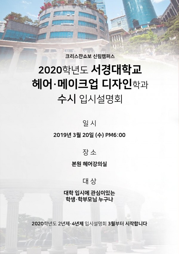 신림쇼보 2020학년도 서경대학교 헤어 메이크업 디자인학과 수시 입시설명회 안내