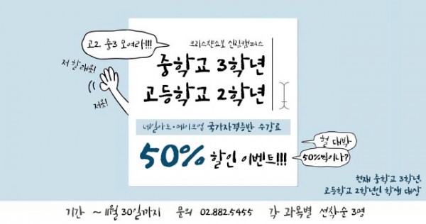 수강료 50%!!!! 할인 이벤트에요 ㅎㅎㅎ
