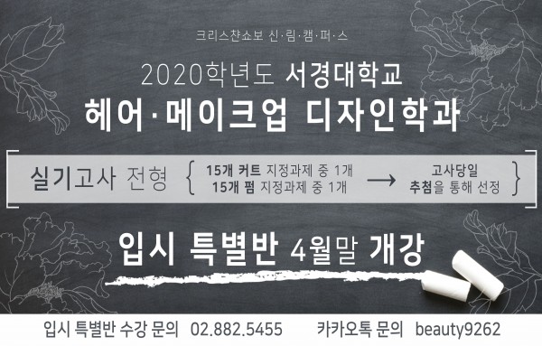 신림쇼보 서경대학교 미용과 입시특별반 개강 안내 ( 4년제 미용대학교 )